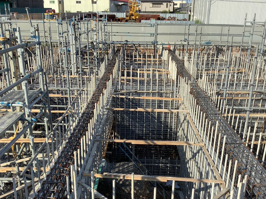 当社では、建物の強度を高め、仕上がりの美しさを実現するため、精度の高い型枠施工を追求しています。